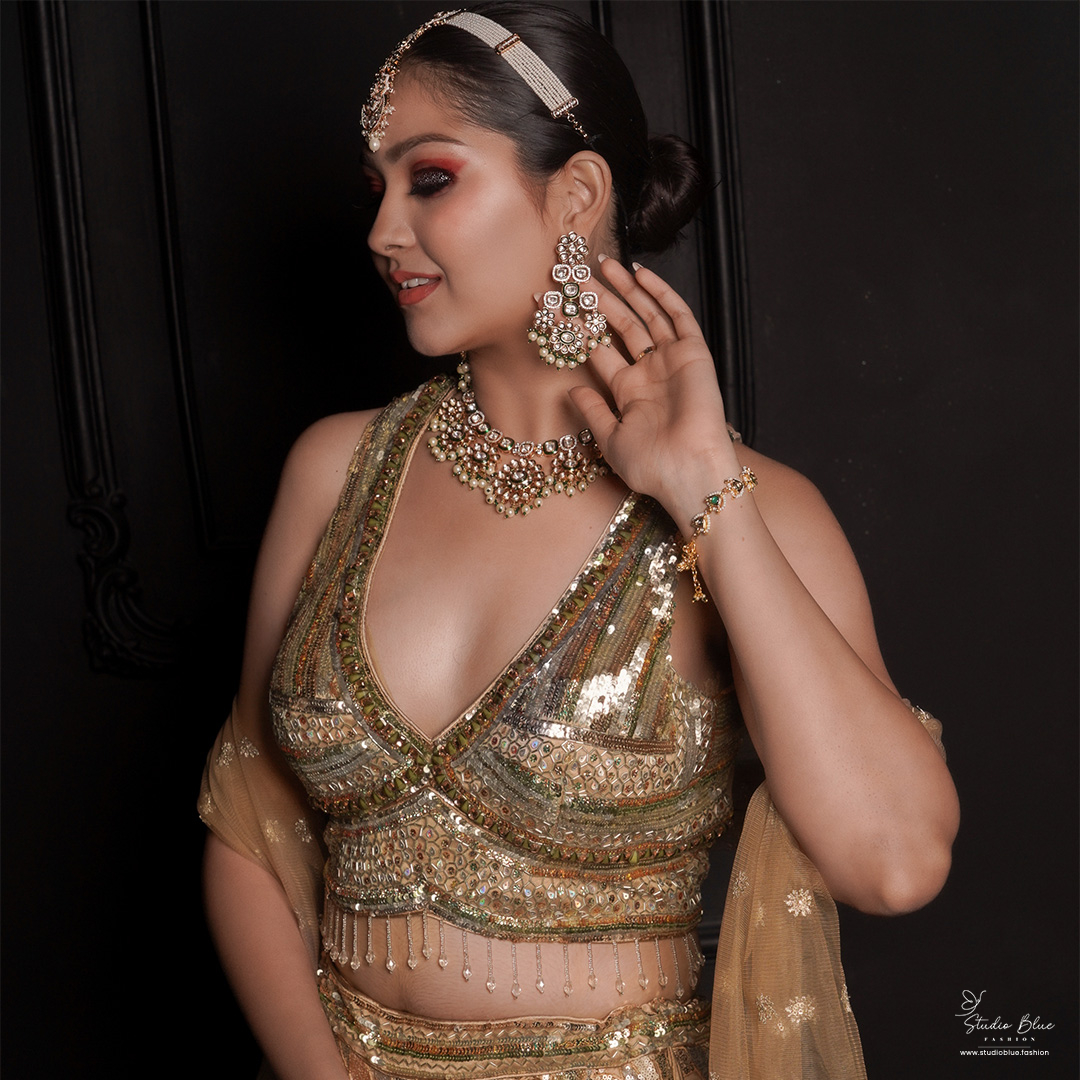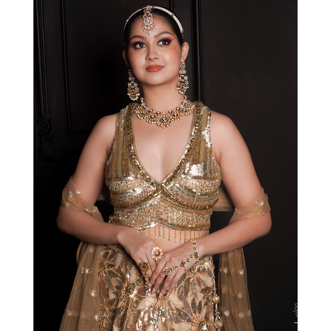 Gold Plated Kundan Necklace Set with Pearl Drops
